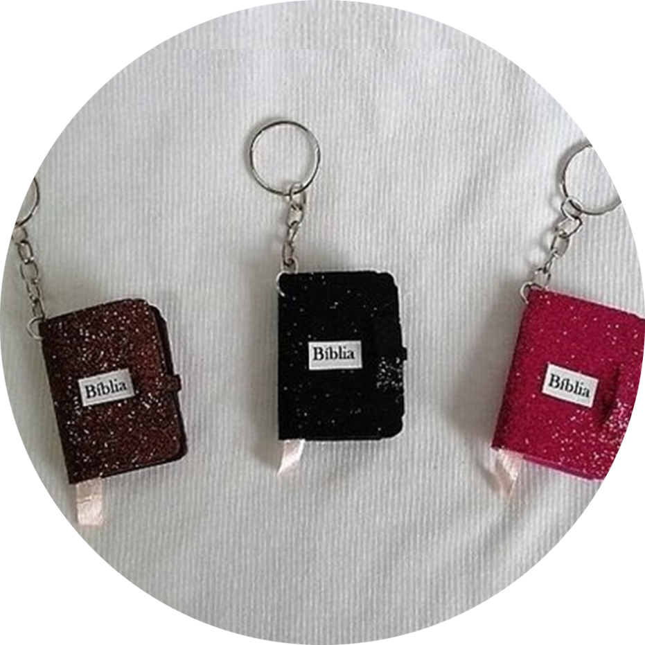 Chaveiro mini bíblia em EVA, com argola em metal, ideal para eventos religiosos. Uma delicada lembrança contendo pequenos versículos para reflexão.